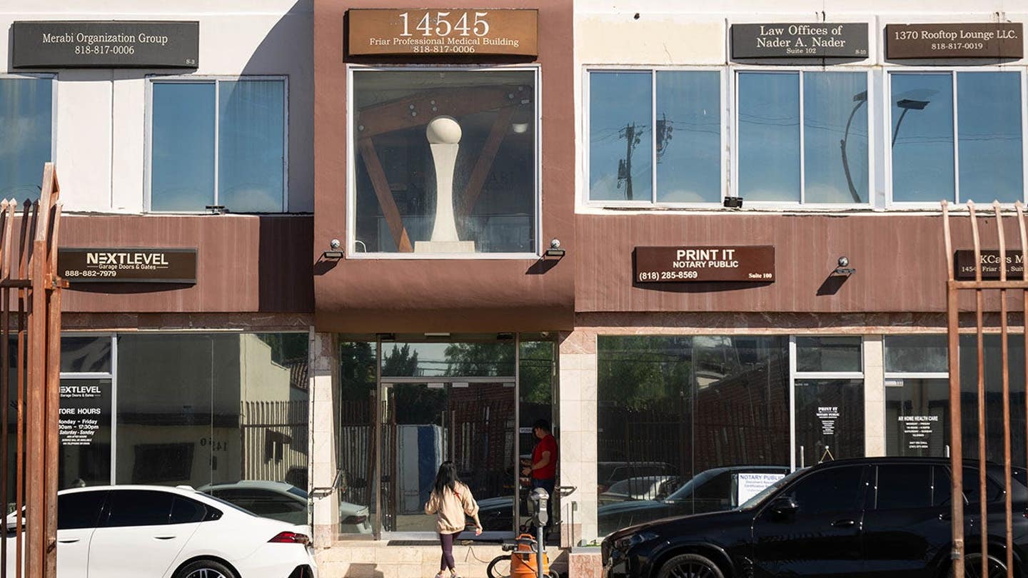 California State Assemblywoman Alexandra Macedo enters the Merabi Professional Medical Plaza Building in Van Nuys last month, where she says she found 197 hospices registered to the address. (Sarah Reingewirtz/MediaNews Group/Los Angeles Daily News)