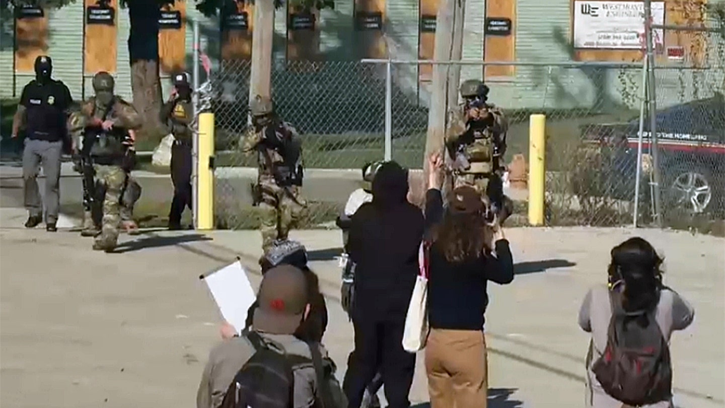 Federal law enforcement confronts anti-U.S. Immigration and Customs Enforcement (ICE) protesters outside an ICE facility in Broadview, Illinois, on Friday, Sept. 26, 2025. (Fox News)