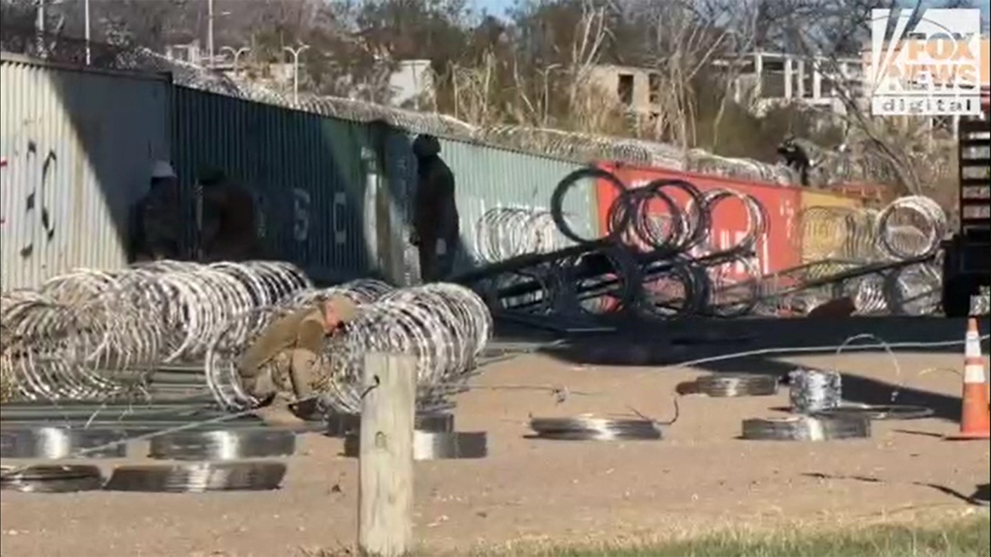 Razor wire in Shelby Park in Eagle Pass, Texas, an area along the Rio Grande. (Matt Finn)
