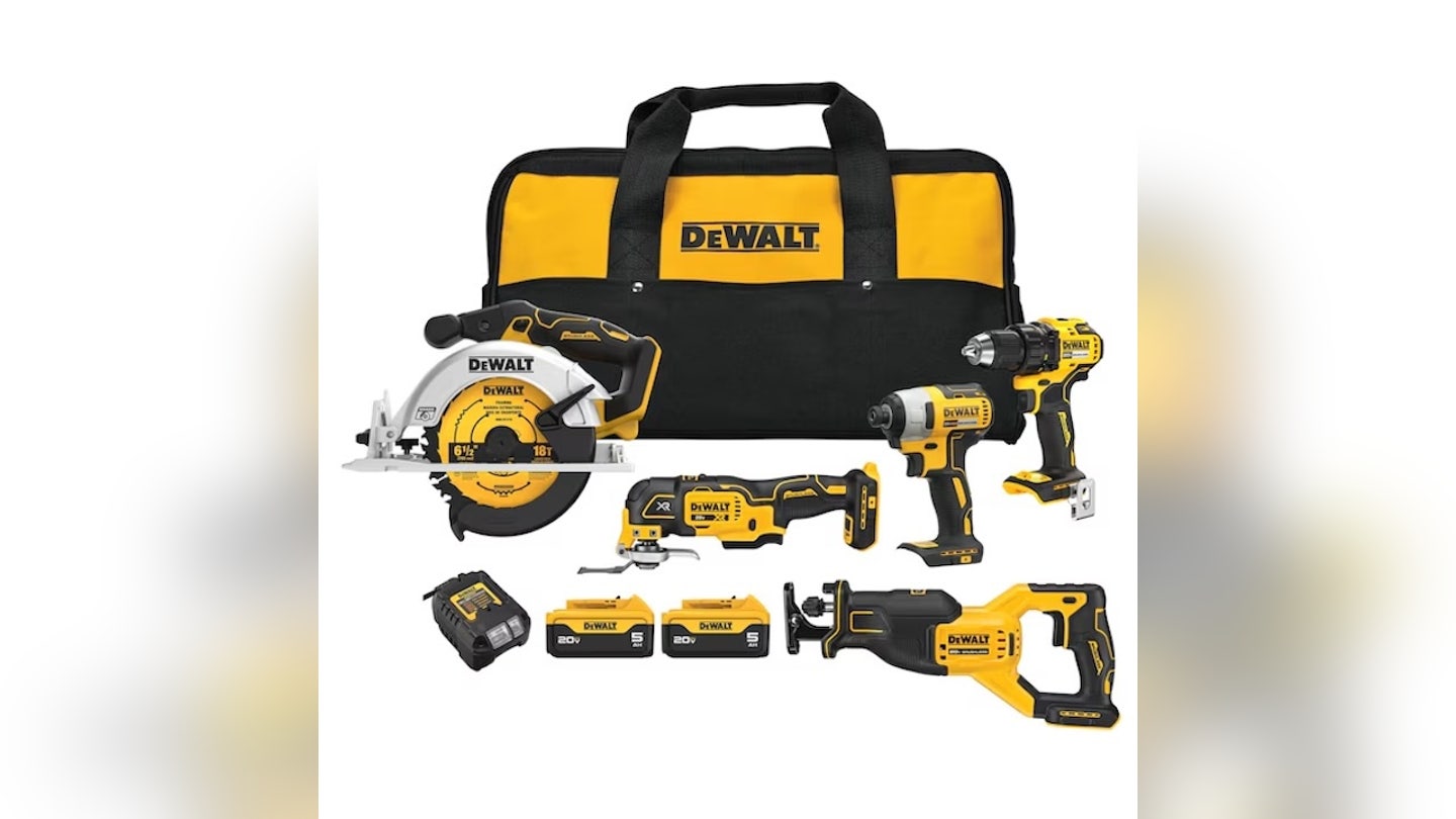 DeWalt tools are professional-grade, long-lasting tools that work for weeks on a single charge. The five-tool DeWalt set includes all the basics, from a drill and impact driver to a circular saw and reciprocating saw. Two batteries can be interchanged among the tools, and the extra-large carrying case holds all the tools at once, ideal for moving from job site to job site.